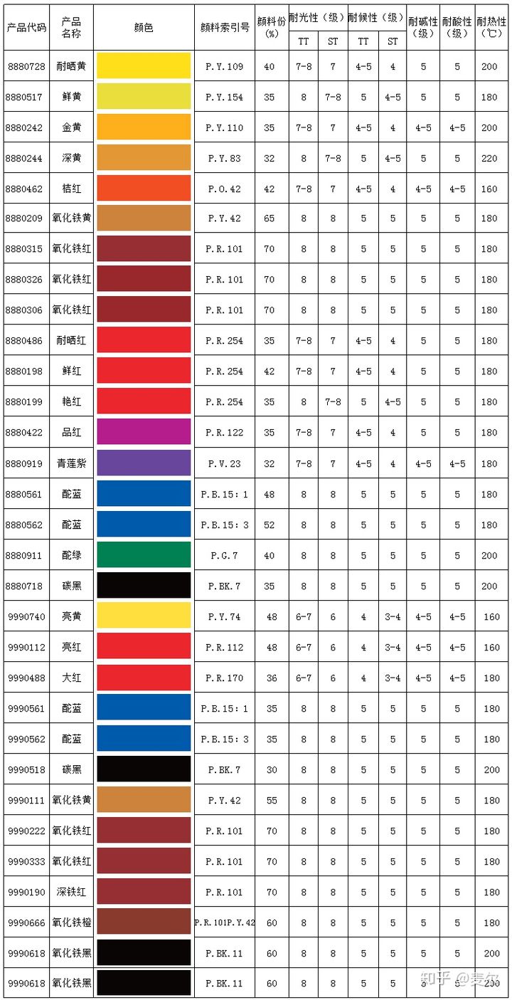 1、色浆中颜料的品质(主要看其国际颜料号) 国际颜料号:简单的理解为按照色粉不同的分子结构统一制定的颜料代码,该颜料号决定了色浆的耐光性能(耐候性能)和耐化学性能(耐酸、碱性能),同时也决定了色浆大致的色相,由于各家色浆公司的生产工艺不尽相同,色浆的色相可能存在细微的差别 。国际颜料号是将不同公司色浆产品型号一一对应起来的重要依据。我们检验不同品牌色浆的品质时应选择不同厂家同一颜料索引号的色浆作对比。任何一家色浆公司都必须向客户提供其色浆的国际颜料索引号。充分了解色粉品质,是乳胶漆厂家针对不同应用领域(如内、外墙色漆)选择色浆最重要的依据。